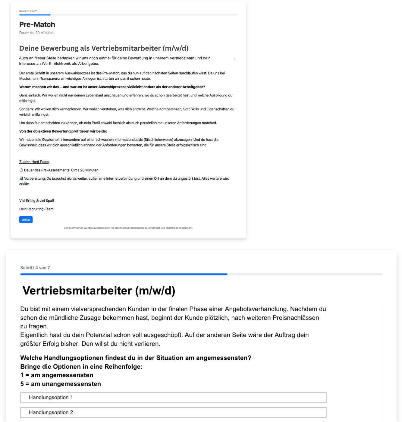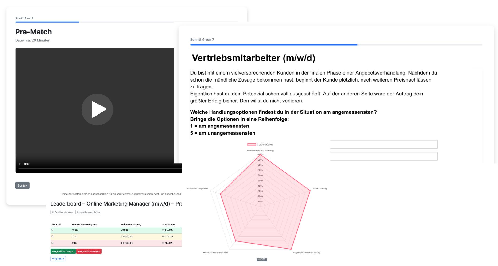 Um Insights in Kompetenzen und die persönliche Passung der Kandidaten zu gewinnen, setzen wir auf zur Stelle passende Situational Judgement Tests oder Kurzaufgaben.